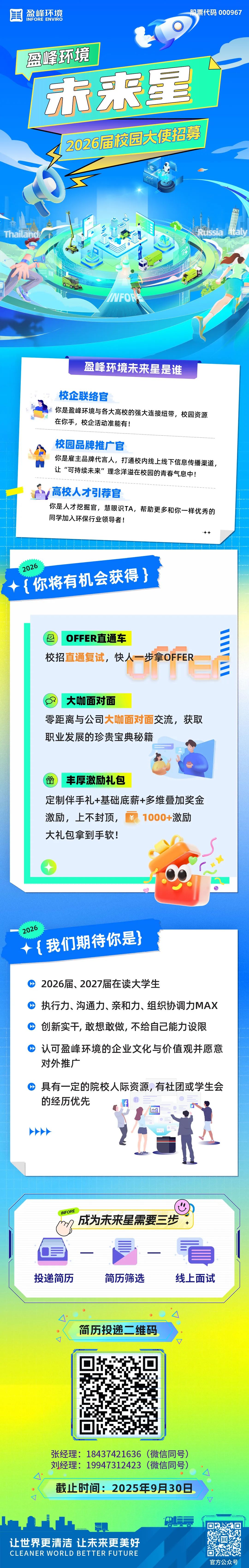 盈峰环境2026届 “未来星” 校园大使招募启动!