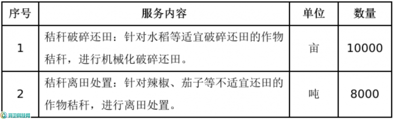 ②秸秆离田,针对辣椒、茄子、圣女果、豇豆、青瓜等(包括但不限于)秸秆由于不易腐烂、塑料绳等农资残留多,不宜还田。以收集离田集中清运的方式进行处置,由乙方通过铲车等方式将农作物秸秆铲至收运车辆处,运至有资质的公司进行资源化、无害化利用免费处理。
