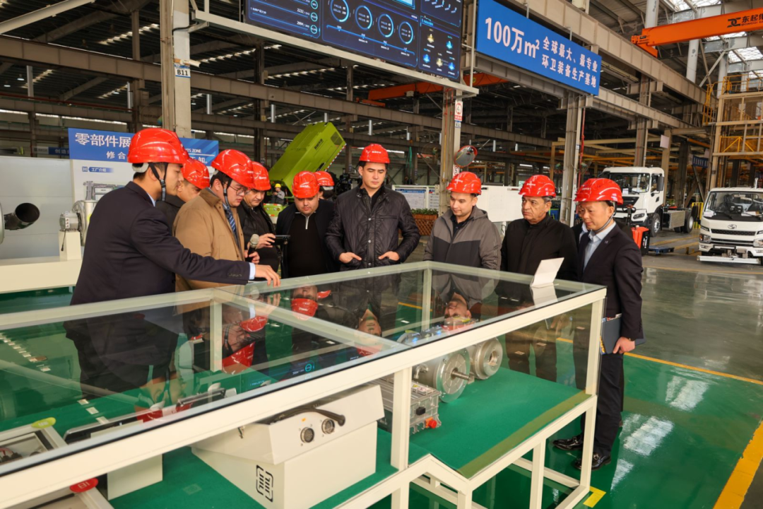 在盈峰环境智能工厂,代表团深入参观了中国环卫行业智能制造标杆基地。工厂内配备中国首条环卫整车RGV装配流水线,实现高度自动化与智能化生产。其中,清扫车生产线平均每18分钟即可下线一台装备,单日产能峰值高达103台,展现出令人瞩目的“盈峰速度”。从核心部件精密加工到整机全流程标准化调试,智能化生产线的高效运转与严密品控体系,为盈峰环境面向全球市场的订单交付与产品升级提供了坚实保障,赢得代表团的高度评价。