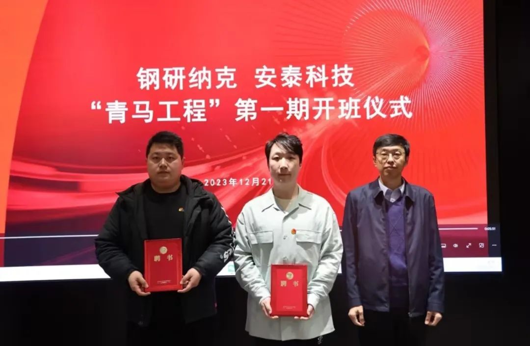 会上还组织观看了青马工程介绍及中国钢研青马一期总结视频。了解了团中央关于“青马工程”建立的初衷,明白“青马工程”的重要意义,学习中国钢研青马一期的宝贵经验。王天明在讲话中感谢安泰科技党委、团委对中国钢研团委工作的大力支持,他表示安泰科技青年团员基础广泛,团组织工作开展得富有特色、卓有成效,希望安泰科技团委要认真组织开展青马工程,培养出能够为安泰科技可持续高质量发展踔厉奋发、挺膺担当的排头兵和生力军,让这些青年点亮自己,照亮他人,努力成长。刘建欣为安泰科技青马一期导师、辅导员颁发聘任证书并合影留念。