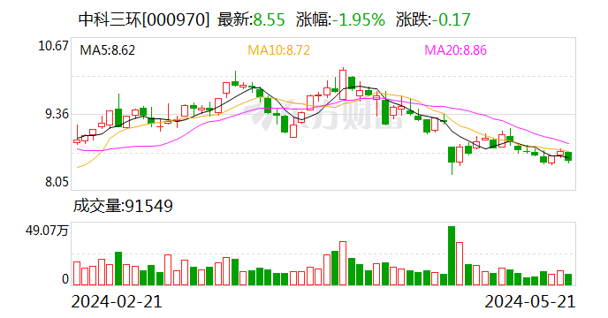 证券时报·数据宝统计,截至发稿,中科三环收盘价为8.55元,下跌1.95%,筹码持续集中以来股价累计下跌12.58%。具体到各交易日,9次上涨,16次下跌。
