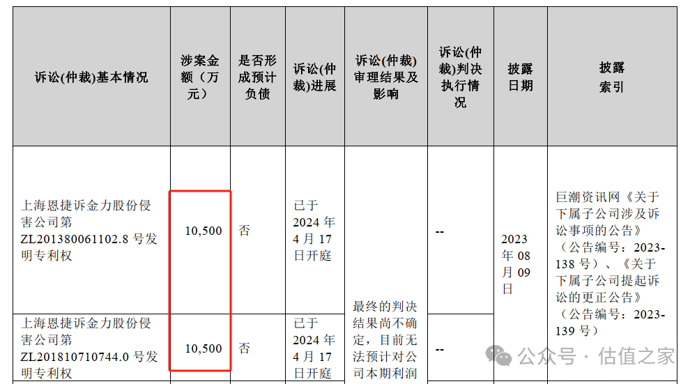 此外值得一提的是,标的公司目前还深陷于与行业头部上市公司的专利权纠纷案件当中,且其涉案金额巨大。根据相关公告显示,2023年5月及8月,锂电池隔膜行业头部上市公司恩捷股份以其专利侵权为由,向标的公司提起了多达五起诉讼。其中,虽然2023年5月恩捷股份提起诉讼的三起案件目前已经宣布撤诉,但剩余两起案件已于2024年4月开庭,目前仍在审理当中,而案件所涉及的赔偿金额合计则高达21,000万元。而颇为巧合的是,此前标的公司宣布终止IPO上市计划的时间点也正是在恩捷股份提起前述两起已开庭专利侵权诉讼后不久的2023年9月。
