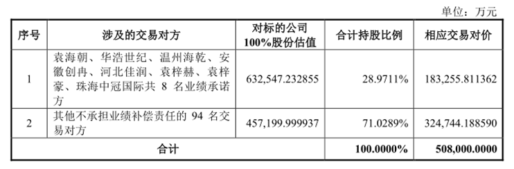 袁海朝等8名业绩承诺方出让金力股份整体估值63.25亿元高于其他不承担业绩补偿责任的94名交易对方45.72亿元。