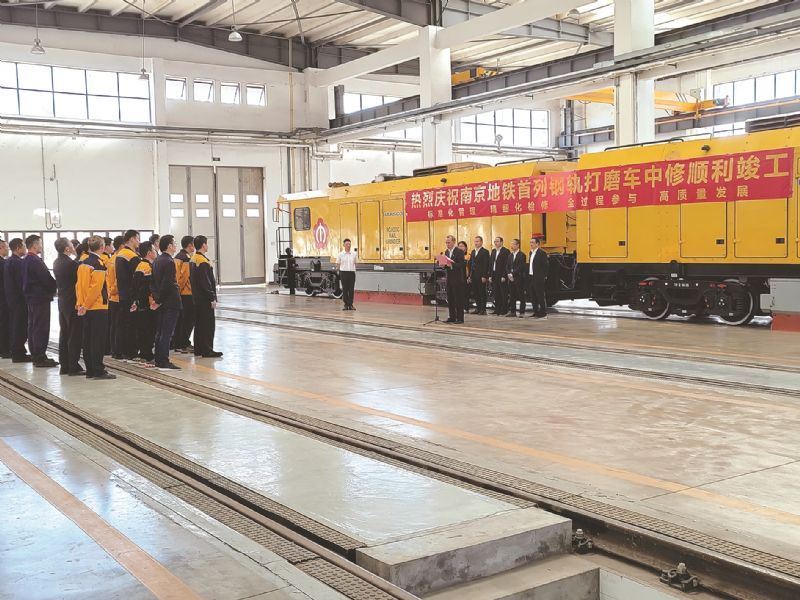 华铁股份全资子公司北京全通达向南京地铁交付首列钢轨打磨车中修项目。