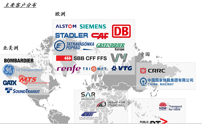 BVV拥有全球主要经济体的铁路公司准入许可,在欧洲、亚洲和南/北美洲均拥有销售网络,客户包括了中国中车、Bombardier(庞巴迪)、ALSTOM(法国阿尔斯通公司)、GE(美国通用电气公司)、西门子、中国国铁集团、德意志铁路公司、瑞士铁路SBB、沙特国家铁路等知名企业。