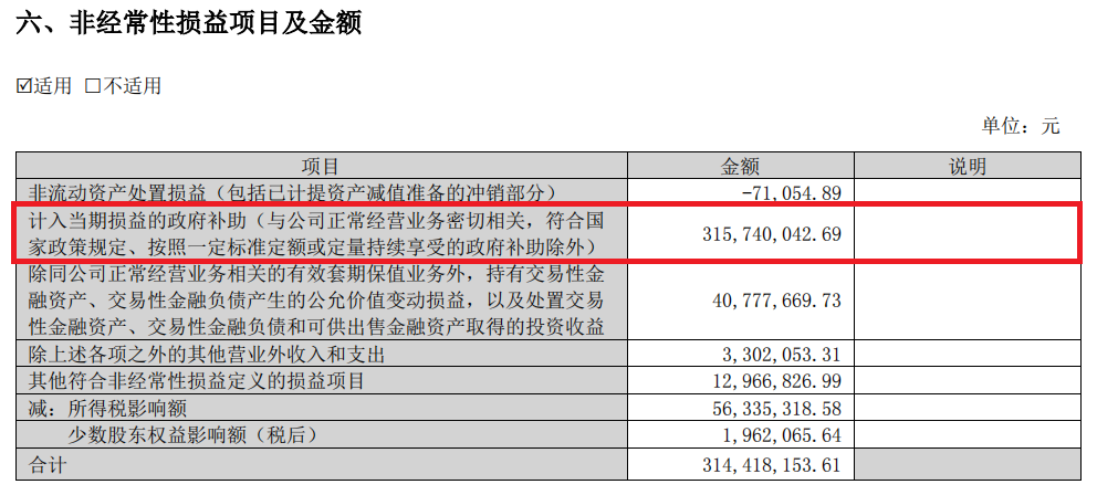 之所以归母净利润有3.25亿元,但是扣非归母净利润仅有1087.2万元,因为浪潮信息2023年上半年“计入当期损益的政府补助”就达到了约3.16亿元,等于说其业绩几乎全是靠政府补助支撑的。