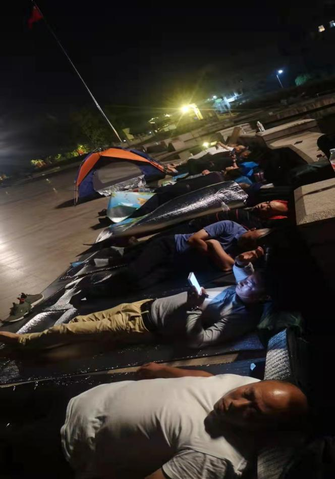 9月5日,几十家众泰汽车经销商前往浙江永康,再一次走上维权之路。这一次,经销商们选择通过绝食、露宿街头等方式维权。从梁勇提供的视频和照片来看,现场有几十人,白天和晚上都在那里,包括雨夜。