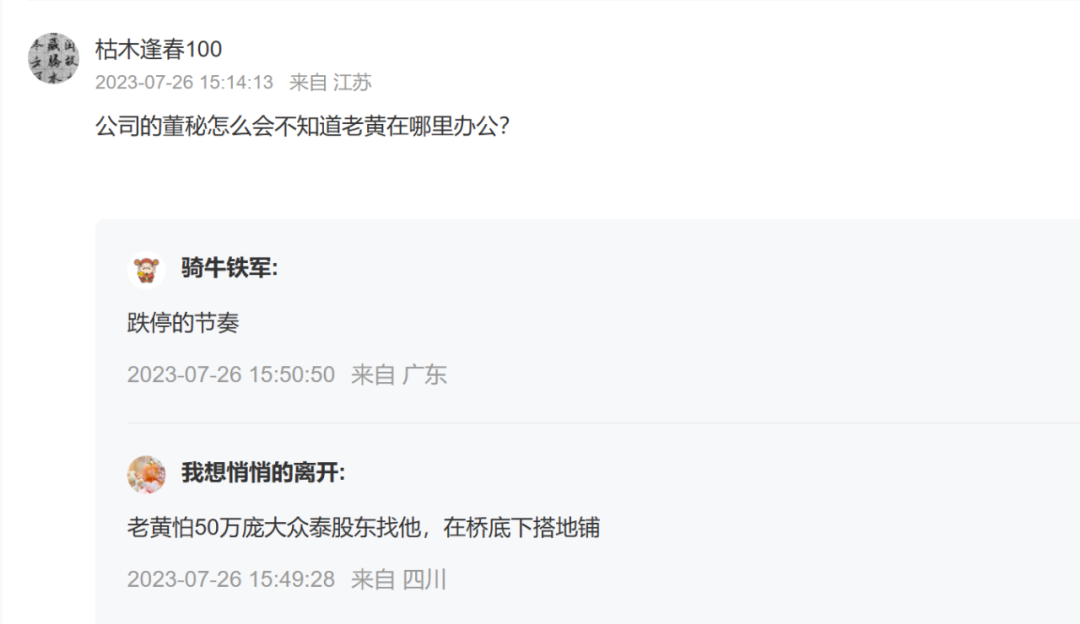 董秘称不知道实控人何处办公引发股民争论