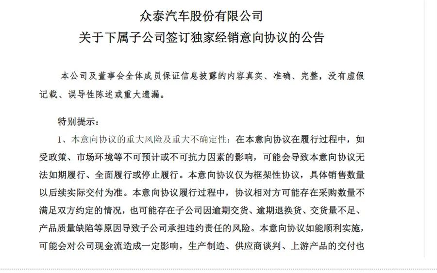 当然,重整之后的众泰汽车也走上了“风口”领域,2023年4月,众泰汽车发布消息称,众泰T300海外版扬帆起航开始出口海外,主要是中东市场,打响进军海外市场的“第一枪”。今年6月28日,众泰汽车又公告称,与阿尔及利亚SARL AI Auto于近日签署了《独家经销意向协议》。由此,众泰汽车在海外方面再下一城,但这仍需要资金的支撑。