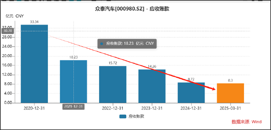 公司应收款账面金额急剧下降,由2020年的33.34亿元骤降至2025年一季报末的8.3亿元。其应收款骤降背后并非相关款项回收,而是来自公司激进的会计计提。
