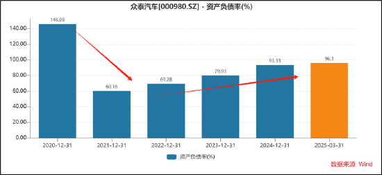 值得注意的是,众泰汽车疑似陷入债务危机。4月3日晚,众泰汽车公告称,公司及下属公司未披露的新增到期未偿还债务本金合计为1.8亿元,债务类型均为留债,约占公司最近一期经审计净资产的14.58%。需要指出的是,一季报末,公司资产负债率飙升至96%。