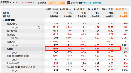 众泰汽车自重整以来业绩并未好转,依然陷入持续亏损状态。