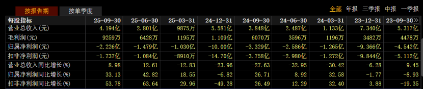 今年前三季度, 众泰汽车 实现营收4.19亿元,同比增长8.98%;归母净利润亏损2.23亿元,同比增长33.13%。拉长时间看,这家曾风光一时的车企已连续六年深陷亏损,2019年至2024年累亏超250亿元。