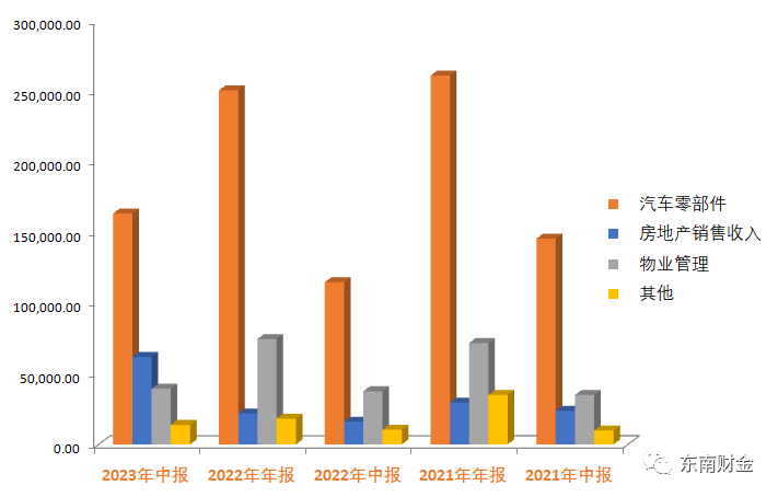 2023年三季报显示,在山子股份营业收入中,汽车零部件占58.64%,房产销售占22.26%、物业管理占14.64%,其他占4.95%。可见,汽车零部件已成为山子股份第一大业务。