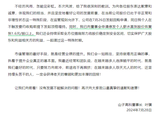 首先,公司宣布了高达10亿元的股份回购计划,回购价格不超过1.60元/股。这一举措旨在稳定股价并向市场传递信心。其次,董事长叶骥承诺停发个人薪水直到股价恢复到1.6元/股以上,这一决定展现了管理层与股东利益一致的态度。此外,叶骥还计划在未来六个月内增持1000万股公司股票,进一步彰显了对公司发展前景的信心。