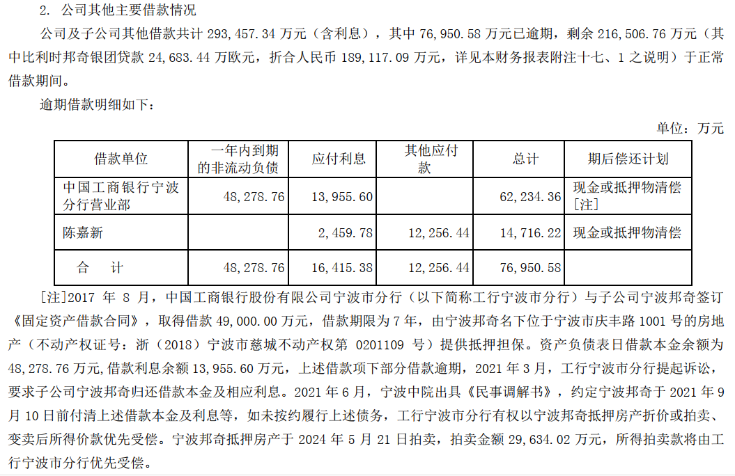 截至6月末,山子高科的流动负债余额仍有73.52亿元。其中,短期借款合计10.45亿元,一年内到期的非流动负债合计25.77亿元,而公司的现金及现金等价物余额仅有8.33亿元。另据半年报披露,公司及子公司其他借款共计29.35亿元,其中7.7亿元已经逾期。