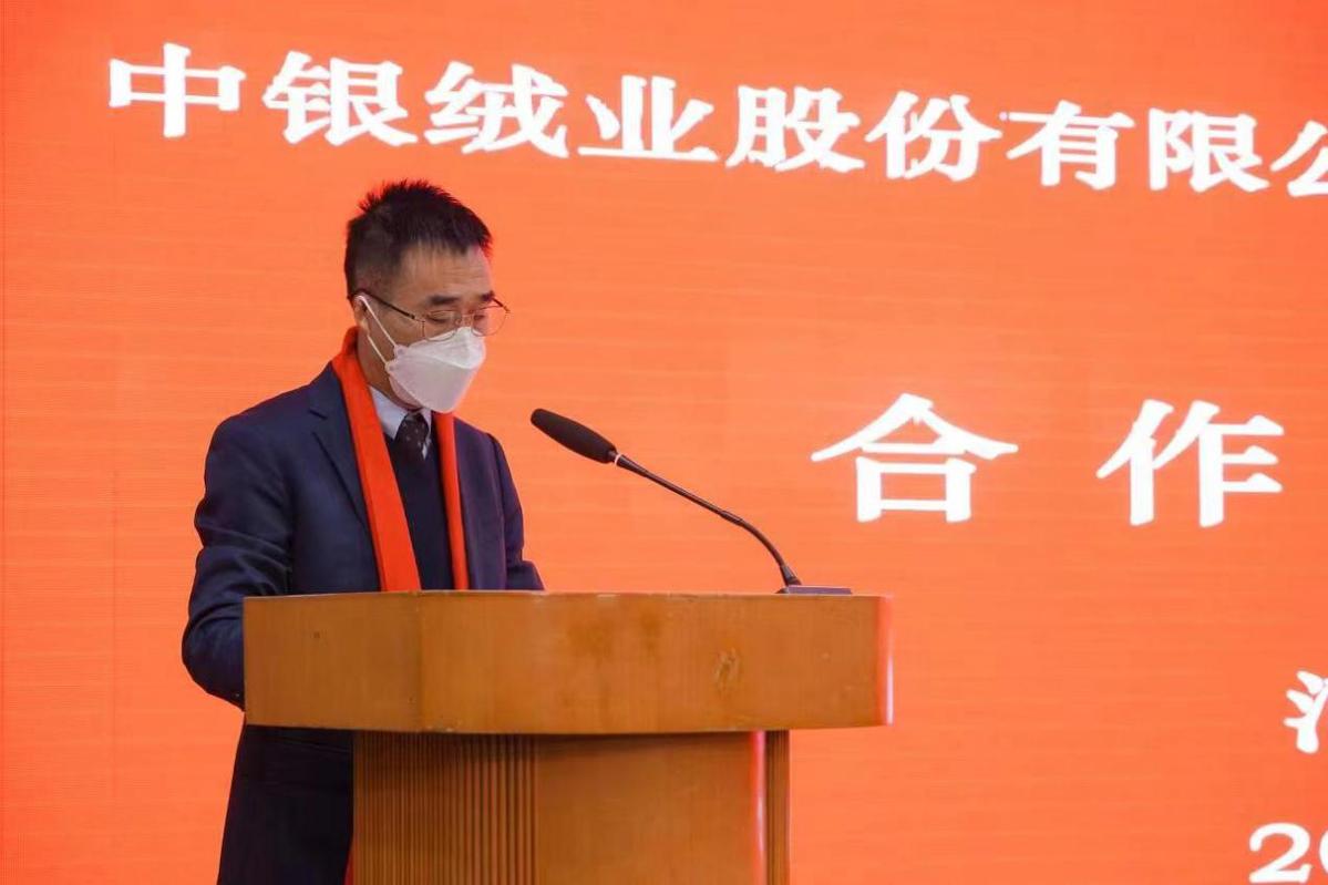 郝广利在致辞中表示,中银绒业是深交所主板上市公司,长期以来都是全球最大的羊绒企业。2021年,中银绒业在深耕羊绒业务的同时,从新能源锂电池材料为切入点进入了新能源行业,实施了新能源锂电池正极材料磷酸铁锂项目,负极材料石墨化加工项目的投资、生产及运营。