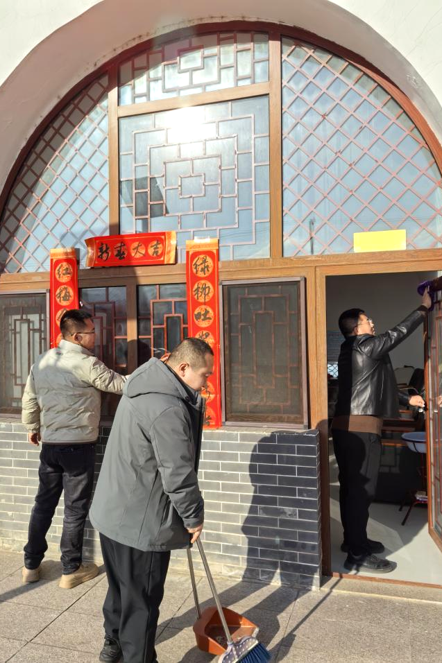 在蔡家崖村,驻村队员齐上阵,打扫办公区域、擦拭门窗玻璃、清扫院落,大家分工合作,干得热火朝天。经过两个多小时的清扫,整个办公区域窗明几净、院落干净整洁,办公场所焕然一新,驻村队员以新姿态、新风貌筹划开启全年工作。
