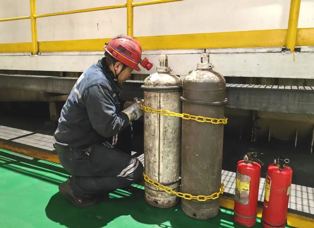 作为检修作业的重要设备,氧气瓶、乙炔瓶的安全管理一直是吕临能化选煤厂的重点监控环节。传统铁丝捆绑工艺存在多重安全隐患:金属材质易与瓶体碰撞产生静电火花,潮湿环境下锈蚀降低固定强度,锋锐边缘易划伤瓶体及操作人员,且拆装过程耗时费力。针对这一难题,该厂成立了技术攻关小组,坚持“保守决策”与“穷尽思维”并重的原则,主动对标对表,广泛收集分析同行业在危化品包装与固定方面的先进技术和管理经验,先后采用了铁链、麻绳、尼龙绳、工程塑料连接环等,确保每一步革新都建立在充分论证和严格把控的基础之上。通过向职工征集意见以及多次进行可行性试验,该厂最终采用高强度工程塑料连接环替代铁丝捆绑氧气瓶、乙炔瓶,为危化品安全管理构筑起科技防护网。