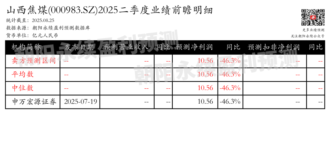 截至2025年08月25日,根据朝阳永续季度业绩前瞻数据: