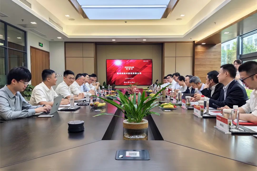 黄敏董事长介绍了固德威的发展历程、经营情况、价值理念和未来发展规划,表示双方未来有机会在光伏、储能、园区智慧能源等领域扩大合作。