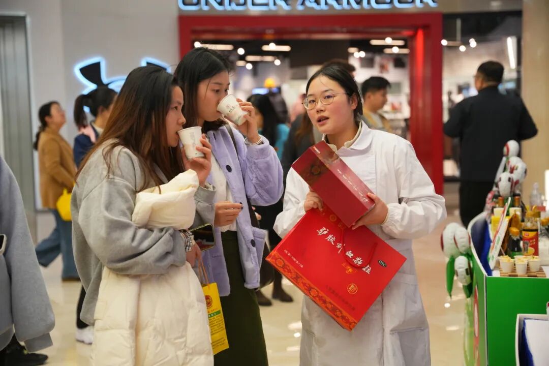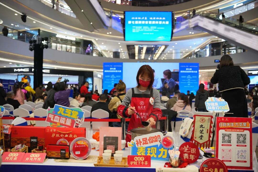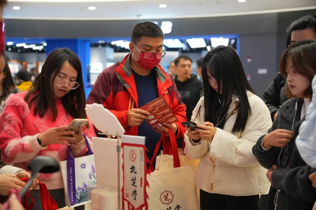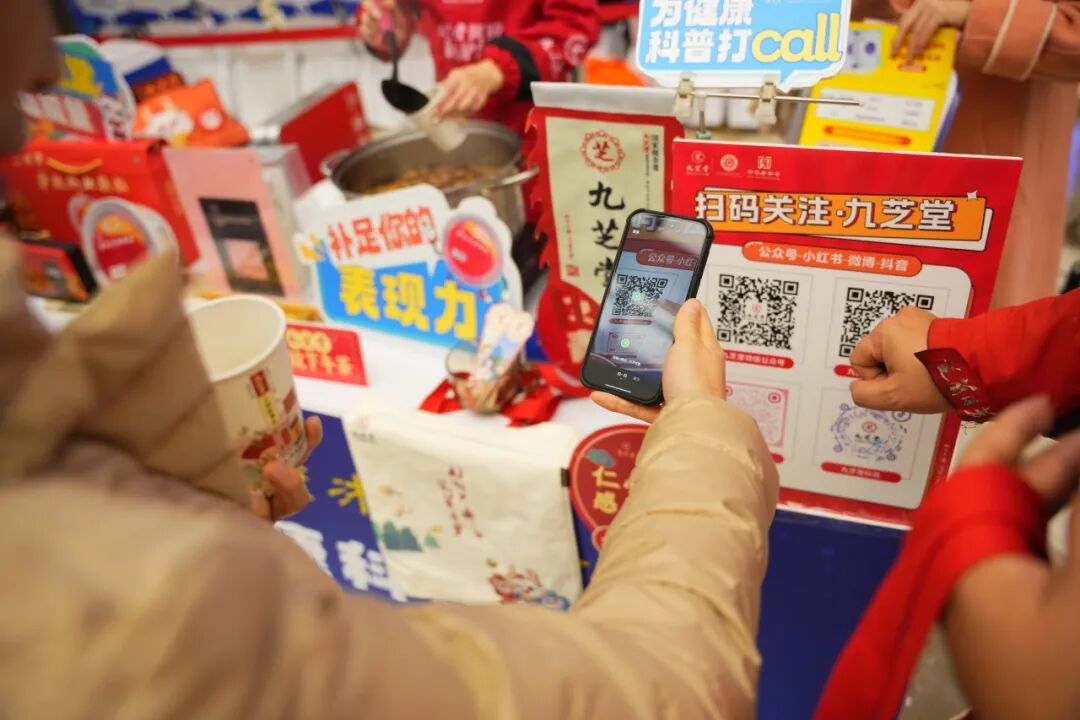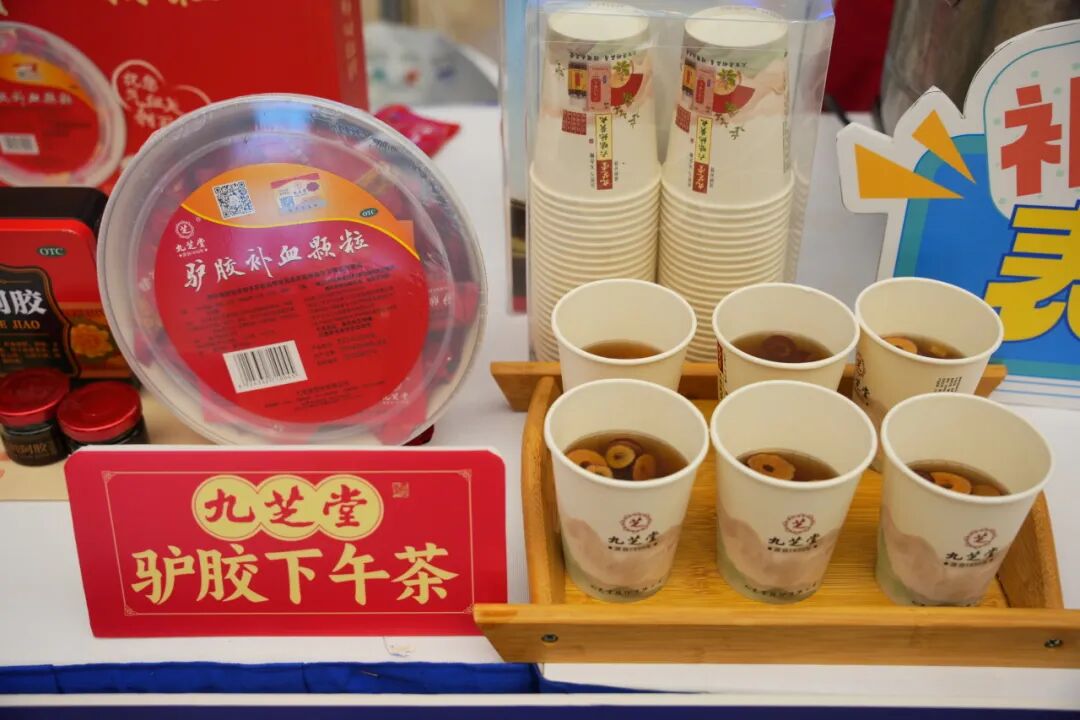 现场陈列的 九芝堂 阿胶、鲜炖阿胶、阿胶膏、驴胶补血颗粒,正是当季补充气血的明星产品; 九芝堂 工作人员热情地普及中医药养生知识;观众们纷纷通过二维码进驻 九芝堂 官方微信公众号、小红书、微博号、抖音号。这一个个中医药文化符号串连起来的生动情景,带给现场一道中医药智慧的健康养生风景线。