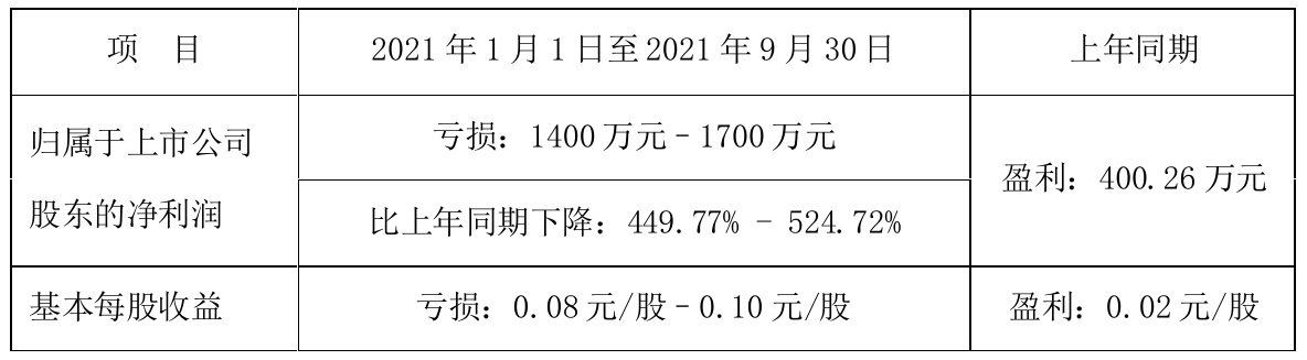 10月14日,皇台酒业(000995)近日发布2021年前三季度业绩预告公告,预计2021年前三季度实现归属于上市公司股东的净利润为亏损1400万元–1700万元,同比由盈转亏。