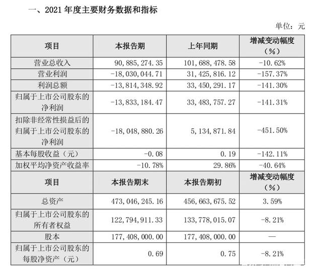 近日,皇台酒业发布《2021年业绩快报》,报告期内皇台酒业营业总收入9088.53万元,同比下降10.62%;净利润亏损1383.32万元,由盈转亏。