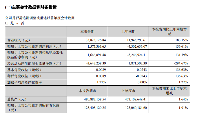同日,皇台酒业还发布了2022年第一季度报告,1-3月实现营业收入0.34亿元,同比增加183.15%;归属于上市公司股东的净利润为157.54万元,同比增长136.61%;经营活动产生的现金流量净额为-364.33万元,同比下降294.67%。