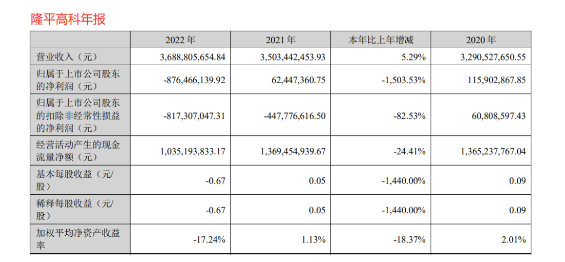 年报信息显示,隆平高科已经连续两年亏损,2021年、2022年该公司的净利润分别为-4.48亿元、-8.17亿元。
