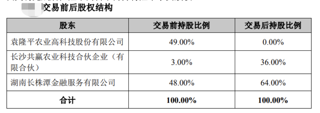 公告显示,隆平高科于2023年7月27日与长沙共赢农业科技合伙企业(有限合伙)(简称“共赢农科”)、湖南长株潭金融服务有限公司(简称“长株潭金融”)分别签订《长沙隆平农业小额贷款有限公司股权转让协议》,隆平高科拟将持有的隆平小贷33%股权转让给共赢农科、16%股权转让给长株潭金融。本次交易完成后,隆平高科不再持有隆平小贷股权。