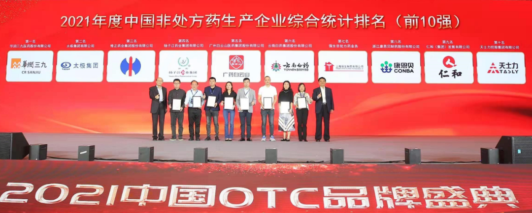 10月18-21日,2021健康中国-首届中国OTC大会暨中国中医药促进大会在广州长隆酒店盛大举办。会上,发布了2021年度中国非处方药生产企业综合统计排名。