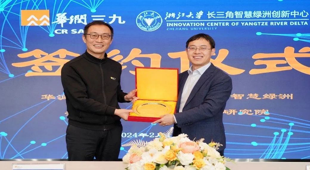 2月1日,华润三九&浙江大学长三角智慧绿洲创新中心共建“创新递送技术联合研究院”签约仪式举行,双方代表在共建“浙江大学长三角智慧绿洲—华润三九创新递送技术联合研究院”合作协议上签字。