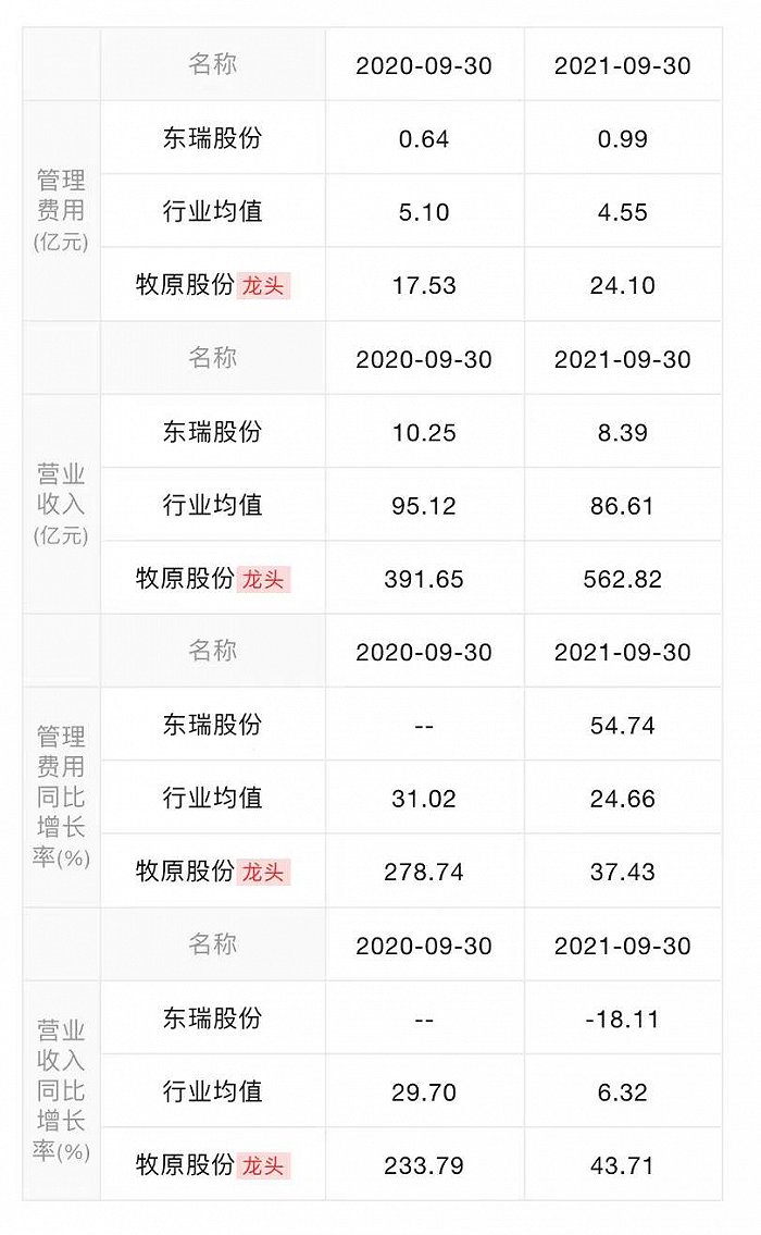 界面新闻记者注意到,2021年前三季度,东瑞股份营业收入同比下降,管理费用却同比上升,且二者增速差异较大,管理费用同比增长率远高于行业均值。