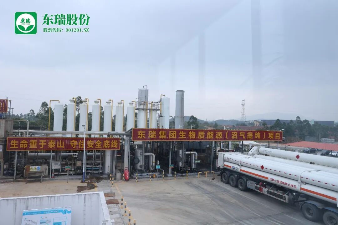 随后,陈勇院士一行前往东源东瑞(船塘)现代农业综合体项目部实地调研。该项目总投资约25亿元,年出栏生猪80万头,是集生态养殖、种植、光伏、旅游于一体的广东省重点建设项目,项目通过资源化循环利用每年可创造1000万元经济收益。调研团队重点参观了广东省首个养殖废弃物沼气提纯项目,详细询问相关工艺、产能效益及资源化利用细节,对东瑞股份资源化利用应用成果给予高度评价与肯定。