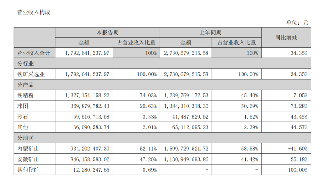 虽然大中矿业自2022年便开始布局锂矿业务,但从其营收结构来看,目前这部分业务尚未带来收益,公司全部的收入来源依然是铁矿采选业。