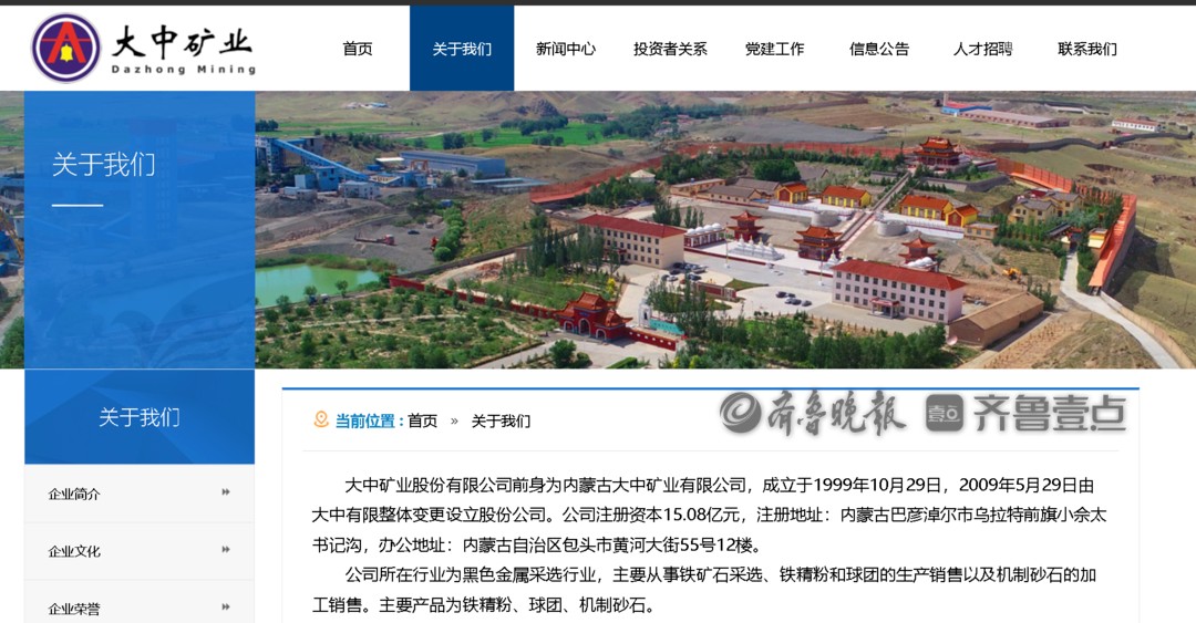 大中矿业 前身为内蒙古 大中矿业 有限公司,成立于1999年10月29日,2009年5月29日由大中有限整体变更设立股份公司。公司所在行业为黑色金属采选行业,主要从事铁矿石采选、铁精粉和球团的生产销售以及机制砂石的加工销售。主要产品为铁精粉、球团、机制砂石。