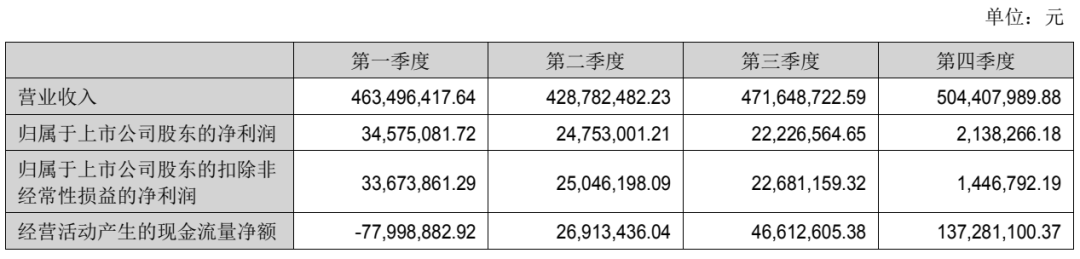 其中2024第四季度,公司营业收入为5.04亿元,同比下降11.9%;归母净利润为214万元,同比下降94.7%;扣非归母净利润为145万元,同比下降96.4%。