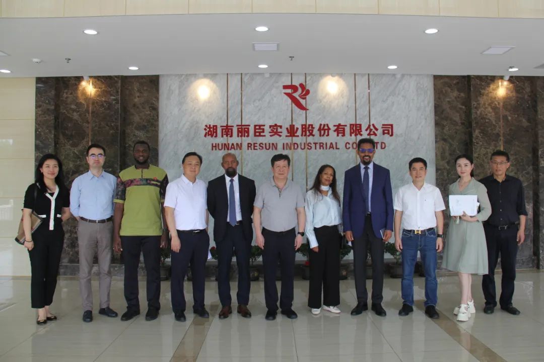 5月29日,湖南省中非经贸合作促进研究会、非洲外宾团、长沙经开区管委会一行莅临丽臣实业公司,就促进中非友好合作事宜进行交流,刘茂林董事长热情接待陪同。