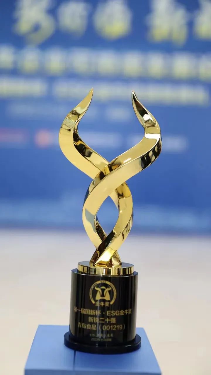 11月24日,由中国证券报、中国国新控股有限责任公司、南通市人民政府联合主办的2023金牛企业可持续发展论坛暨第一届国新杯·ESG金牛奖颁奖典礼在江苏南通举行。凭借在ESG方面的卓越表现,青岛食品股份有限公司(下称“青岛食品”)入选“第一届国新杯·ESG金牛奖新锐二十强”。