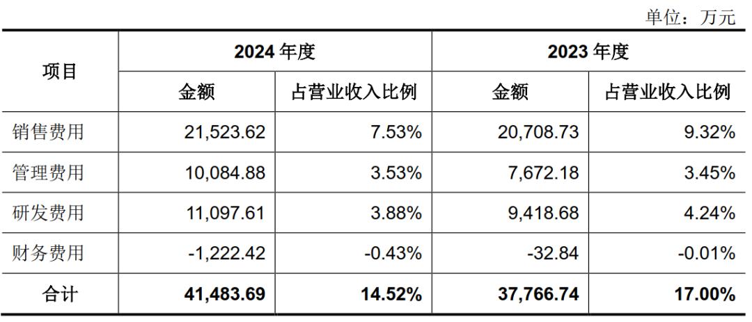 值得注意的是,悍高集团表示2024年度公司期间费用率同比下降2.48个百分点,进一步增加了公司的利润规模。其中,销售费用同比下降1.79个百分点,对期间费用率的变动影响较大,主要原因系销售费用中职工薪酬费用率与广告展销费用率下降所致。