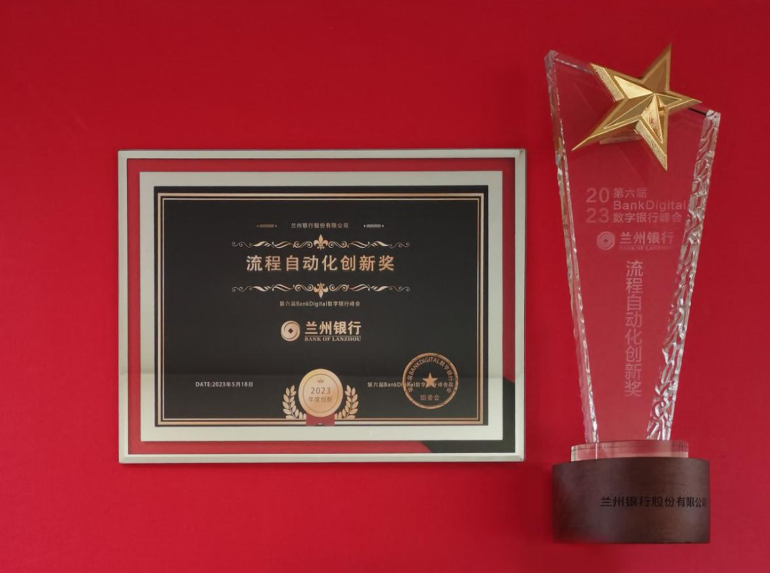 5月18日,在北京举办的第六届Bank Digital数字银行峰会上,兰州银行凭借RPA创新应用,在层层选拔中脱颖而出,荣获“流程自动化创新奖”。