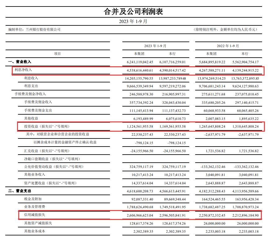 今年前三季度,兰州银行计提信用减值损失26.07亿元,去年同期为22.51亿元,同比增长15.82%。