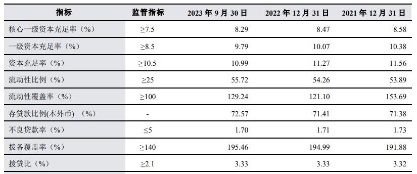 截至2023年三季度末,兰州银行资本充足率为10.99%,2022年末为11.27%;一级资本充足率9.79%,2022年末为10.07%;核心一级资本充足率8.29%,2022年末为8.47%。