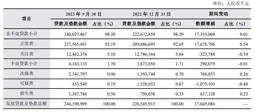 截至2023年三季度末,兰州银行不良贷款41.63亿元,2022年末为38.73亿元;不良贷款率1.70%,较2022年末下降0.01个百分点;拨备覆盖率195.46%,较2022年末提升0.47个百分点。