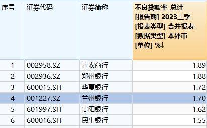 今年三季度末,兰州银行不良贷款率为1.7%,但是在42家上市银行之中,也只是仅次于青农银行、郑州银行和华夏银行,排名上市银行第四。