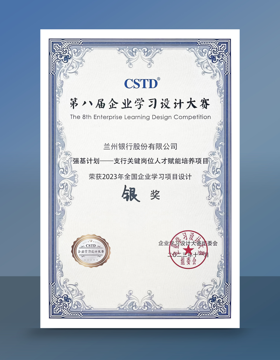 ? 11月15日,在中国人才发展平台CSTD(Chinese Society for Talent Development)主办的“第八届企业学习设计大赛金融专场”比赛中,经过层层选拔,兰州银行“强基计划——支行关键岗位人才赋能培养项目”斩获银奖,同时获奖的还有中国建设银行、邮储银行、兴业银行、中国工商银行和浙江民泰商业银行等5家银行。