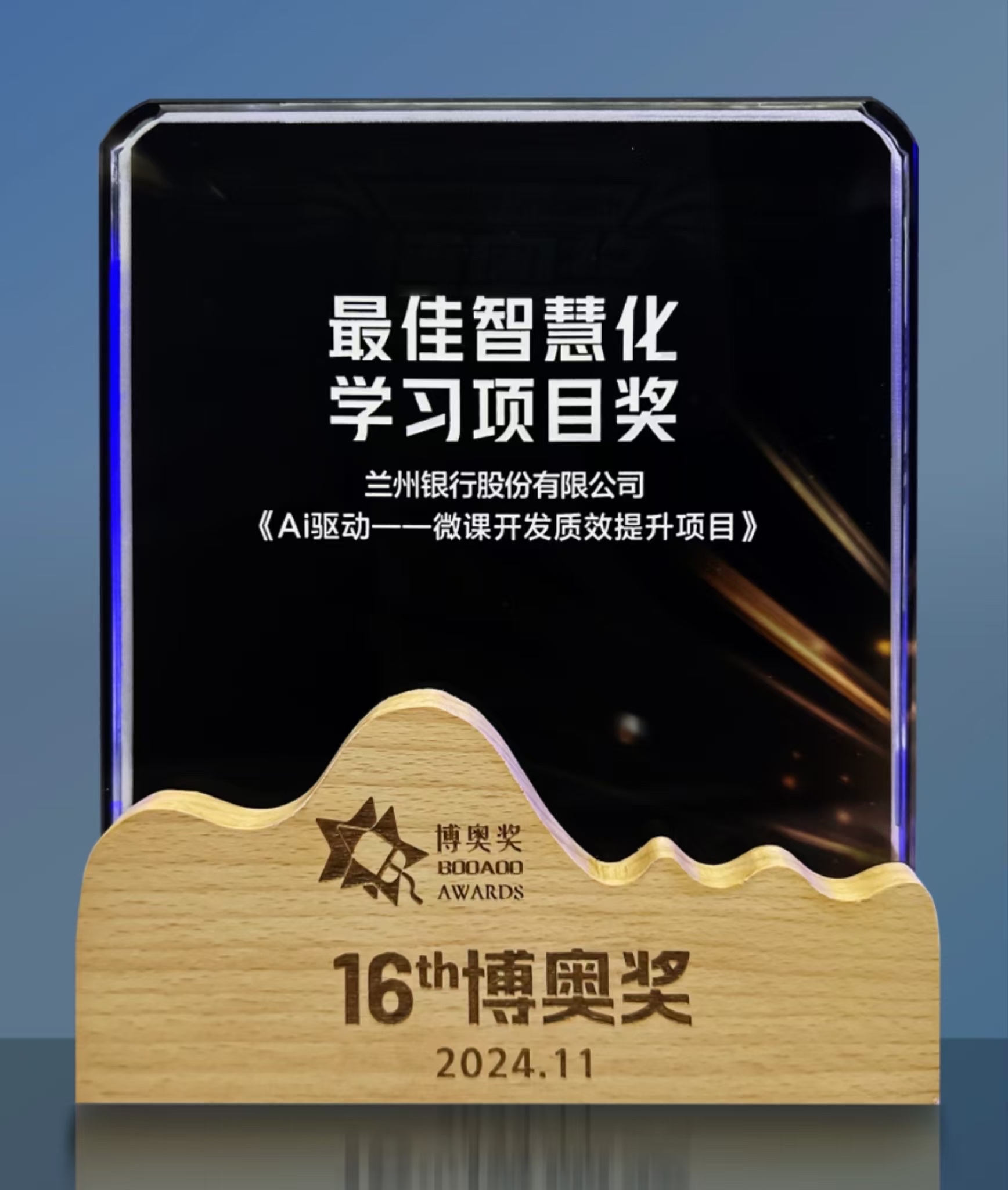 11月20-21日,AI+教育创新与人才发展高峰大会(IETDS)在北京召开。会上,兰州银行凭借在学习培训领域的数字化转型创新实践,申报的两个人才培养项目分获“博奥奖”两项大奖——“最佳创新应用实践奖”和“最佳智慧化学习项目奖”,成为大会唯一一家获得两项荣誉的城商行。