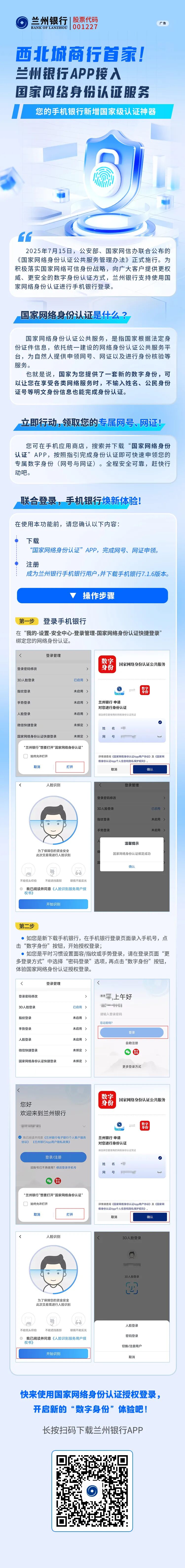 【手机银行】西北城商行首家!兰州银行app接入国家网络身份认证服务