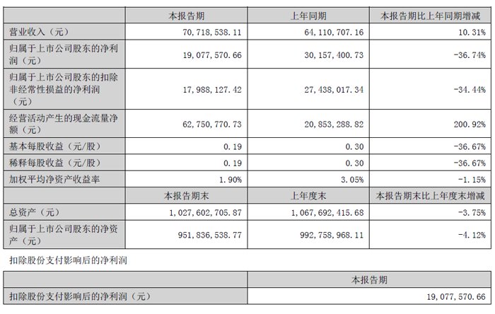 资产负债状况方面,截至 2025 年 6 月末,公司总资产为 10.28 亿元,较上年末下降 3.75%;归属于上市公司股东的净资产为 9.52 亿元,较上年末下降 4.12%。流动资产合计 6.49 亿元,流动负债合计 0.63 亿元,营运资金(流动资产与流动负债差额)达 5.87 亿元,保持了较强的短期偿债能力。这种资产规模的小幅收缩与净资产的下降,可能与利润留存减少及分红等因素有关,但整体财务状况仍保持稳健。